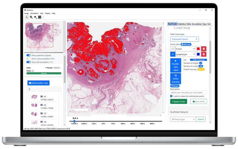 By providing real-time single nucleus & tissue-level diagnosis, nuclei.io aims to assist pathologists with digital pathology slide diagnosis and improve turn-around time, quality, and clinical workflow.